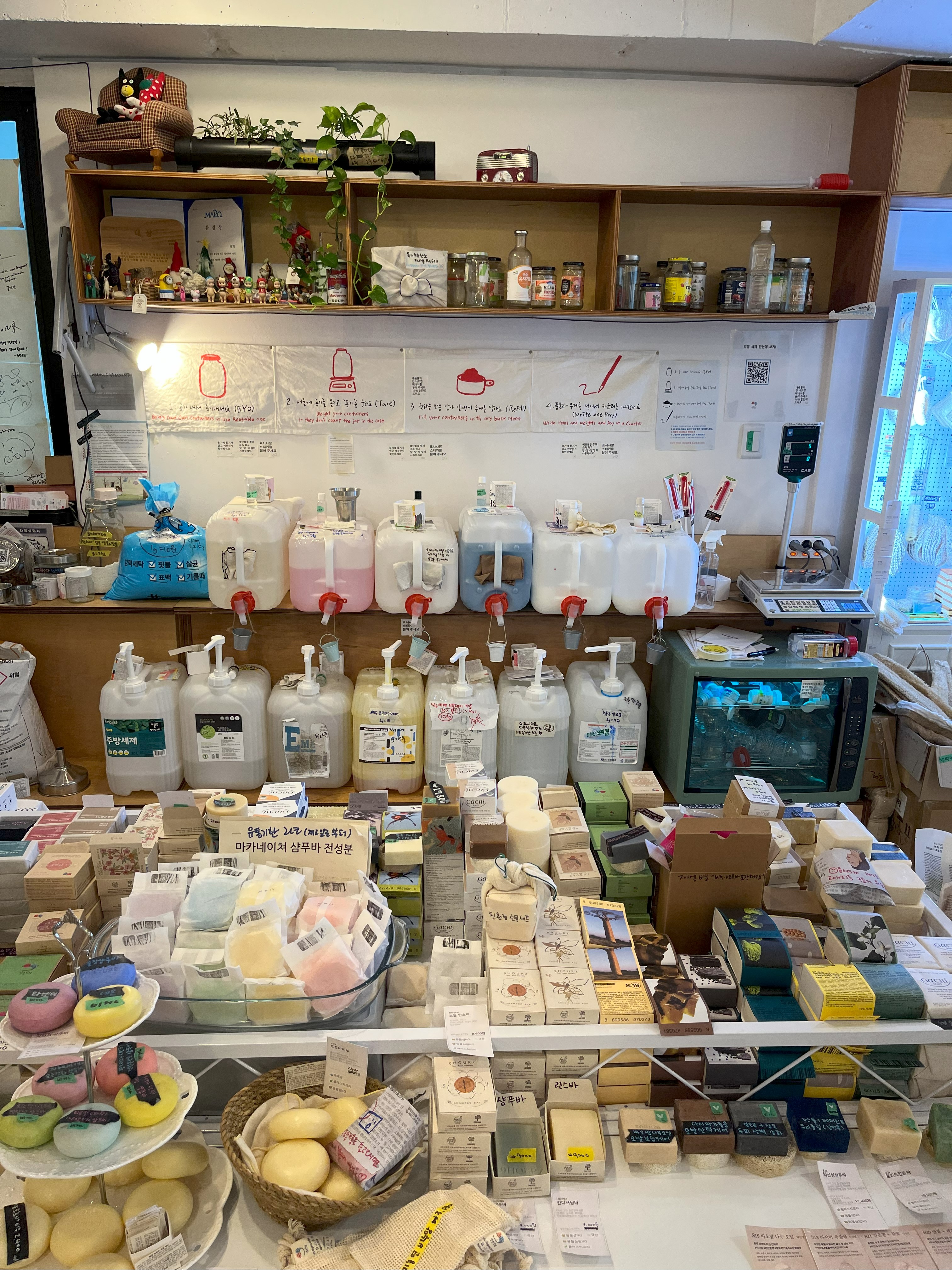 처음에 가게를 들어섰을때의 느낌은 물건이 가득 쌓인 창고같은 느낌이랄까요? 플라스틱통과 종이에 담긴 세제들과 비누 향기가 코를 찌릅니다.