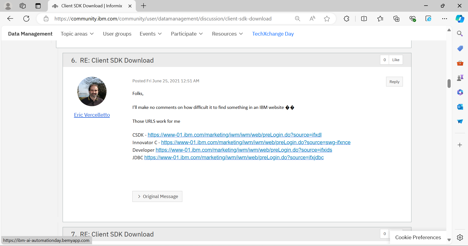 IBM Community에도 Informix 제품을 다운로드를 받으려면 여러 단계를 거쳐야 해서 불만을 성토하는 글이 많았습니다.